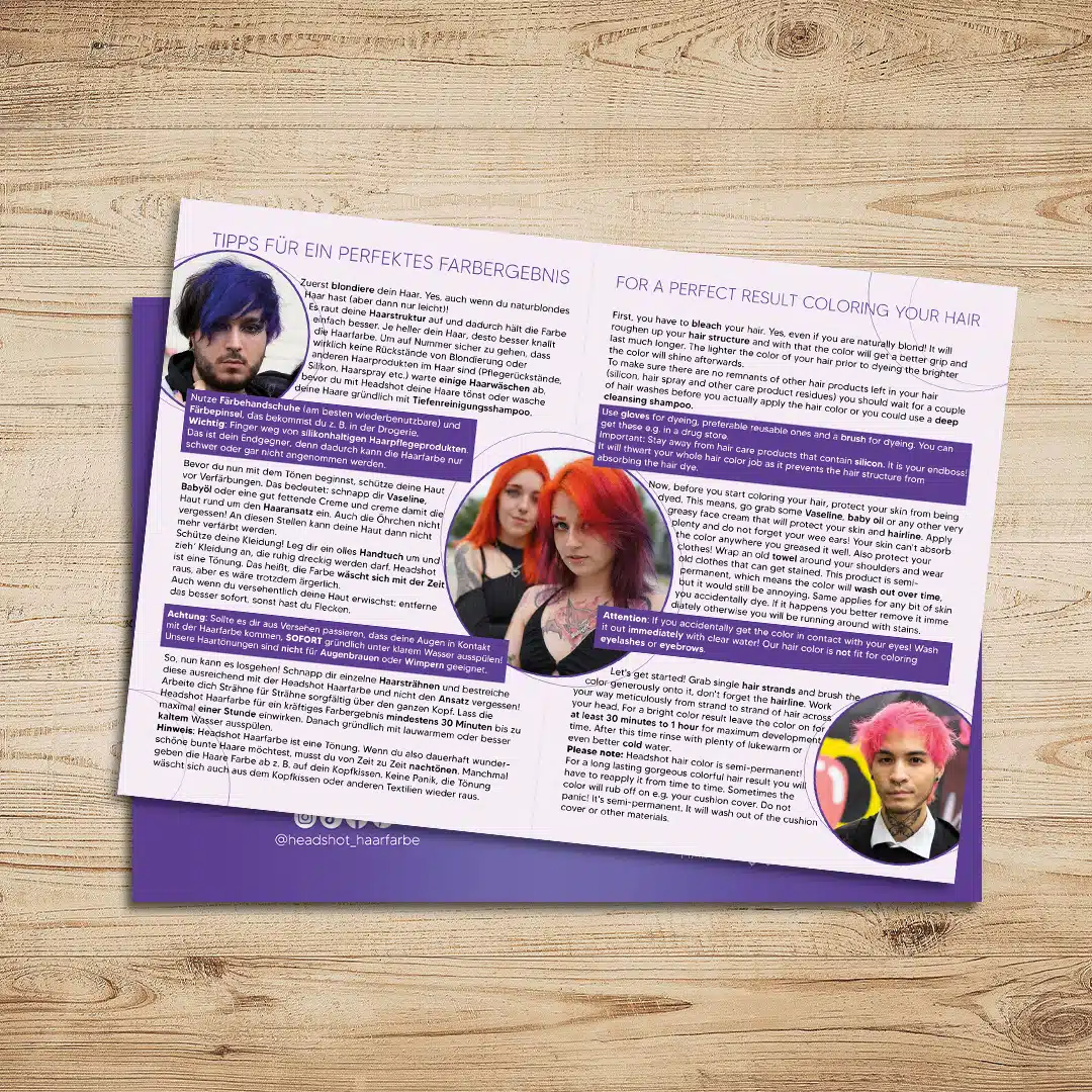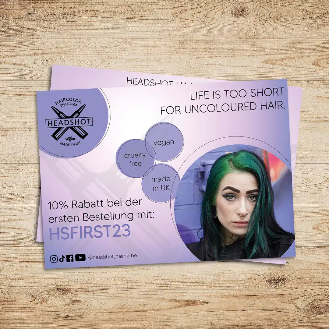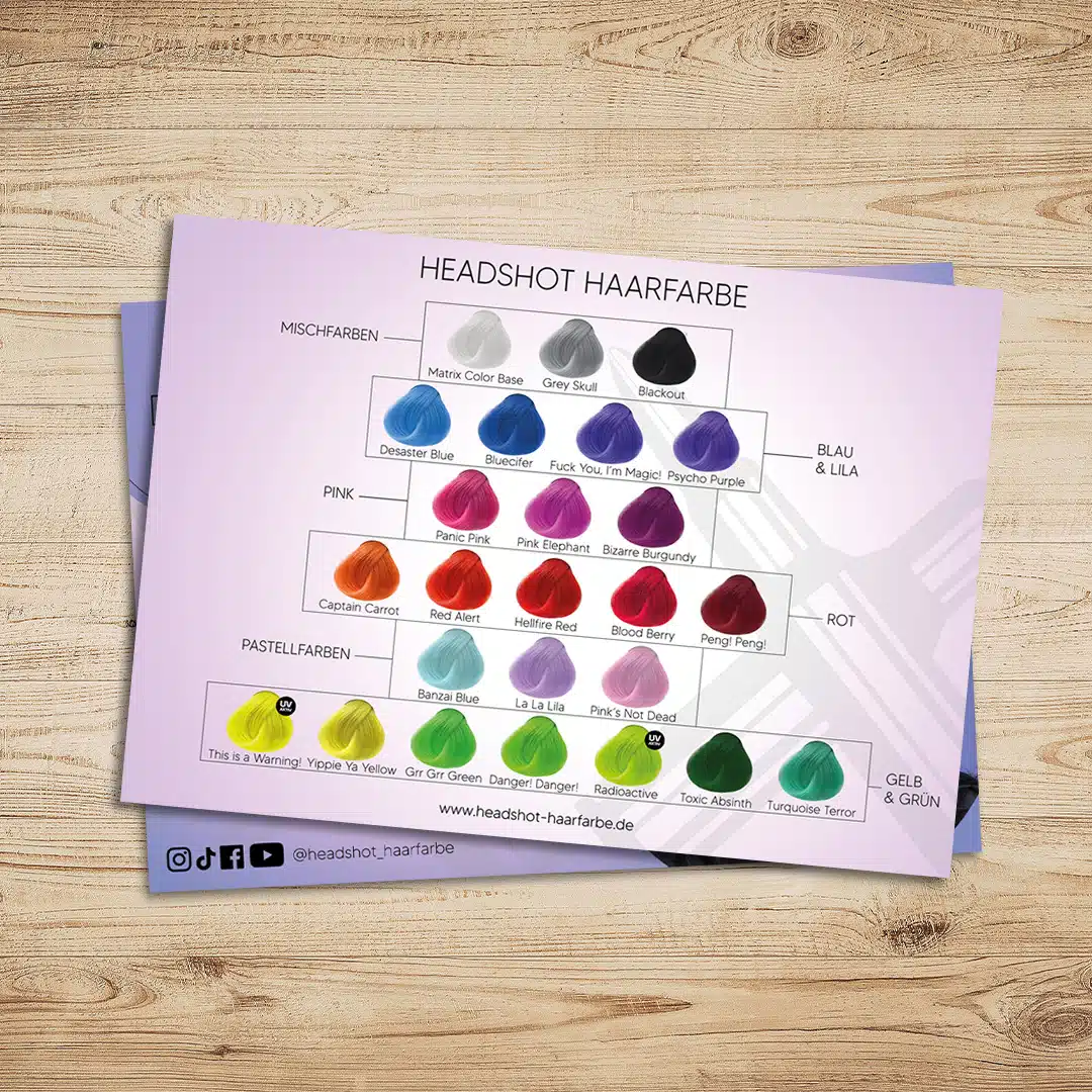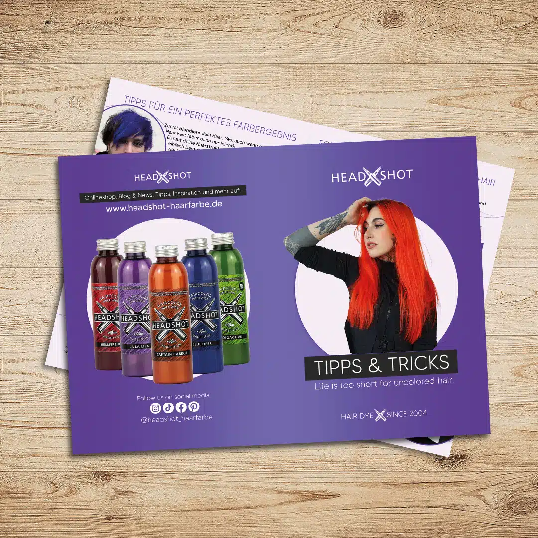 Design verschiedener Flyer für Headshot Haarfarbe (erstellt mit Photoshop & Illustrator)